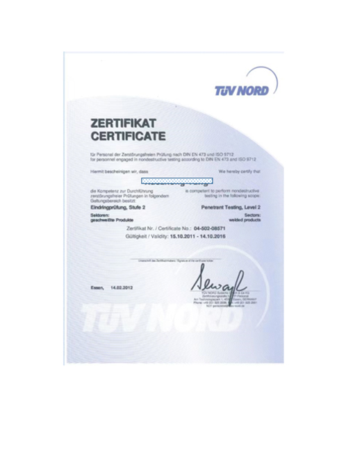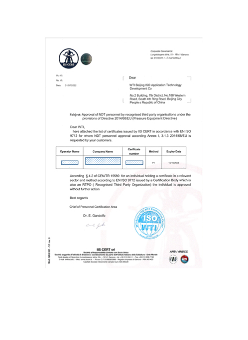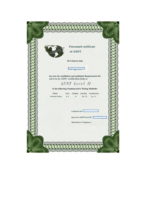 ASME无损检测证书