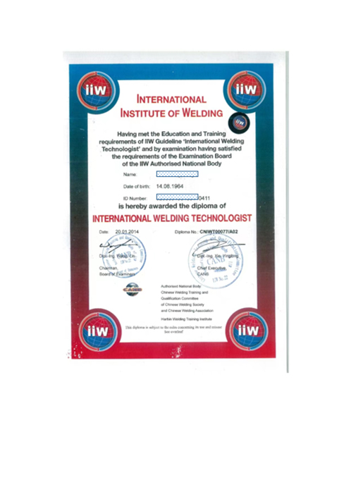 IWT国际焊接工程师证书